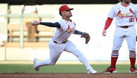 Combined to hit .283/.364/.468 (134-for-474) with an .832 OPS across 119 games between Peoria (High-A) and Springfield (AA) in his transition to playing shortstop full-time...Led Cardinals minor leaguers in doubles (36) and triples (8), and ranked among organizational leaders in runs scored (91, 2nd), games played (119, T-5th), hits (134, 3rd), stolen bases (43, 2nd), walks (63, T-2nd), total bases (222, 4th) and sacrifice flies (8, T-2nd)...Was 43-for-48 in stolen base attempts for an 89.6% stolen base success rate...Enter the season rated as the No. 8 prospect in the Cardinals organization, and was listed as the “Best Athlete,” “Fastest Baserunner,” & “Best Infield Arm” in the Cardinals organization in the publications “Best Tools” survey...Began his year in Peoria, hitting .349/.404/.566 (45-129) with a .970 OPS, seven triples, and 11 doubles in 33 games while going 15-for-15 on stolen-base attempts...At 20 years old, opened the campaign as the sixth-youngest player in the Midwest League...Promoted to Springfield on 5/24 with pitchers Gordon Graceffo and Michael McGreevy...At the time of his promotion, Winn's seven triples co-led all of Minor League Baseball with Carson Williams, a Single-A Charleston RiverDogs shortstop in the Rays organization...Ended the season hitting .258/.349/.432 (89-345) with a .781 OPS, 11 home runs and 25 doubles in 86 games with Springfield...Swiped 28 bases in 33 attempts (7th in Texas League)...Led Texas League shortstops with .983 fielding pct...Finished the season as the second-youngest player in the Texas League to teammate Jordan Walker, who is two months younger...Batted 8th and started at shortstop for the National League in the SiriusXM All-Star Futures Game at Dodger Stadium, going 0-for-2...Unleashed a 100.5 mph throw from shortstop at the SiriusXM All-Star Futures Game, breaking the record for the hardest infield throw since Statcast began tracking in 2015...Is the only MLB/MiLB infielder to record a 100+ mph throw (2015-present), which also topped the previous Statcast record set by Pittsburgh's Oneil Cruz (97.8 mph) earlier in the week...In a vote of league managers in Baseball America's Best Tools survey following the season, was recognized as having the "Best Infield Arm" in the Midwest and Texas Leagues, and as the Midwest League's "Best Defensive Shortstop."...Played for Salt River in the prospect-laden Arizona Fall League and earned a selection to the Fall Stars Game.