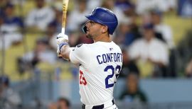 Michael Thomas Conforto…married wife Cabernet in Dec. 2021…son Camden born Dec. 2023…his mother, Tracy, is a three-time Olympic medalist in synchronized swimming…played in the 2004 Little League World Series for the Northwest region…attended Oregon State where he was named Pac-12 Player of the Year twice and helped lead the team to the 2013 College World Series…drafted 10th overall in the 2014 MLB Draft to the New York Mets.