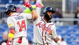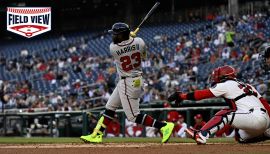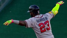 Awards: National League Player of the Week (6/18). NL Gold Glove Finalist (CF)...NL Ranks: Batting average (7th, .293)...23-year-old Michael Harris II completed his second major league season, posting a slash line of .293/.331/.477 (148-for-505) in 138 games...He hit 18 home runs, 33 doubles and three triples, while recording 57 RBI and 76 runs...Went 20-for-24 in stolen base attempts .. Established career-highs in games played, runs, hits, doubles, walks (25) and total bases (241)...Made his first Opening Day roster in 2023...Started 137 of Atlanta's games during the regular season; all in center field (appeared once as a pinch-hitter, drawing a walk)...Started each of the club's four postseason games in center field..Went hitless in 13 plate appearances...Listed No. 5 on MLB Network's "Top 10 Center Fielders Right Now" list, ranked fifth, entering 2023...Listed No. 50 on MLB Network's "Top 100 Players Right Now" list...Ranked 53rd, entering 2023...Over the last two seasons, he ranks third among center fielders in assists (11) and 10th in FanGraphs' Defensive Runs Saved (10)...From June 1, through the end of the regular season, he batted .326 (129-for-396) - this, after hitting .174 (19-for-109) through May...It's the fourth-largest increase in batting average (+.152) through May/post-June 1, by any qualifying player in the Divisional Era (since 1969), behind Chone Figgins (+.216) in 2007, Joey Votto (+.165) in 2016 and Dave Roberts (+.159) in 1973...Hit .325 (89-for-274) post-All-Star break; sixth- highest among qualifiers...He was one of three Braves in the top-10 in that regard, along with Ronald Acuna Jr., third (.345) and Matt Olson, eighth (.321)...Led the majors with 94 hits from the No. 9 spot in the batting order; most within a single-season in the franchise's Modern Era (since 1900) - besting his own mark of 70, set in 2022...Hit .301 (94-for- 312) in 88 starts batting ninth...Matched his stolen base total (20) from his rookie season, becoming the fourth player in franchise history to steal at least 20 bases in each of their first two big league seasons...Joined Steve Brodie (1890-91). Bill Bruton (1953-54) and Rafael Furcal (2000-01)...Of his 37 career longballs, 26 have been hit on the road - including six over an eight-game road trip, spanning Sept. 11-20; his most home runs over any eight-game span in his career...Had 13 games with at least three hits, improving on his total from his rookie campaign (10)...Ronald Acuna Jr. (22) was the only Brave with more such efforts...Ozzie Albies also had 13...Homered and stole a base within the same game on three separate occasions...The first instance of his career - June 12 at Detroit. followed by June 14 at Detroit and Aug. 25 at San Francisco (two stolen bases)...Placed on Atlanta's 10-day injured list (lower back strain) from April 7 to April 28, missing 19 games...lncluded a two-game rehabilitation stint with Triple-A Gwinnett...Delivered the game-winning hit (double) in the bottom of the 12th inning, May 7 vs. Baltimore, off LHP Cionel Perez, marking the first walk-off hit and RBI of his career...Fell a triple shy of the cycle, June 7 vs. New York (NL) - his first three-hit effort of the season...Hit a go-ahead two-run home run in eighth inning; the second go-ahead home run in the eighth inning-or-later of his career, also August 12, 2022 at Miami...Notched his third career four-hit game, June 14 at Detroit (Game 1); first since Aug. 28, 2022 at St. Louis...He'd add two more four-hit games to his ledger by season's end: June 18 vs. Colorado and Aug. 18 at San Francisco...His four RBI in the contest also matched his career-high, done twice previously...Paired with a three-hit game at Detroit on June 12, it's the only time in his career that he's turned in consecutive games with three-or-more hits...Went 5-for-5 with a three-run home run and a double, June 18 vs. Colorado...Marked his second game with at least four hits over a six-game span, also: June 14 at Detroit; matching his number of four-hit efforts over the first 158 games of his career...Per Statcast. his blast traveled 453 feet; the longest of his career...Became the first Brave to record at least five hits in a game, without making an out. since Nick Markakis, April 4, 2019 vs. Chicago (NL)...At 22 years-103 days-old, he became the sixth youngest player in the franchise's Modern Era (since 1900) to record at least five hits within a single-game and the youngest since Andruw Jones (21 years-360 days) on April 18, 1999 at Colorado...Named National League Player of the Week for the period ending June 18; the first such honor of his career...Hit .556 (15-for-27); highest among qualifiers over that span, with three home runs, two doubles, nine RBI. eight runs and two stolen bases, posting an OPS of 1.499...Hit a go-ahead single off RHP Yunior Marte, breaking a scoreless tie in the 10th inning, June 22 at Philadelphia...It was his second career go-ahead RBI in the ninth inning-or-later; the other: a 12th inning walk-off double, May 7 vs. Baltimore...Went 3-for-3 or better, three times over a 12- game span, from June 14-26...In the Modern Era (since 1900). the only other player age 22-or-younger to have three such efforts in a span of 12 games is Hall-of-Farner Ted Williams in 1939...Following the All-Star break, hit safely in 13 of 14 contests, including a 12-game hitting streak, spanning July 16-30 - the majors longest streak at the time...Ranks as the second-longest hitting streak of his big league career, behind a 15-game run from Aug. 22-Sept. 9, 2022...Slashed .375/.405/.525 (15-for-40) with four doubles and one triple...Hit a pair of solo home runs, Aug. 1 vs. Los Angeles (AL) bringing his season total to 11...Snapped a 20-game homerless drought, which matched the longest of his career...Became the 40th player (13th active) in the Modern Era (since 1900). to notch double-digit home runs and stolen bases in each of their first two MLB seasons...Additionally, became the 