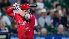 In 12th season with the Angels, despite being limited to 119 games due to a rib injury, still produced third 40-run campaign of career...Became just the sixth player in baseball history to amass 40 home run in 120 games or less and just the fourth to do so in a non-strike shortened season...Finished eighth in the A.L. MVP race...Named a Silver Slugger for the ninth time in career...Set franchise record with seven consecutive games with a home run from Sept. 4-12, coming one game away from tying the Major League record...In that span, homered in five straight games at Angel Stadium, tying the all-time record for the ballpark...On Aug. 26, set a new franchise record for runs scored, passing Garret Anderson (1,024)...Connected for career hit 1,506 on Aug. 29, passing Darin Erstad for fourth-most in Angels history...April 25, became third player in Angels history with 50 career triples, joining Jim Fregosi (70) and Chone Figgins (53)...Launched 161st home run at Angel Stadium on May 9, passing Tim Salmon (160 HR) for most home runs ever hit at the Big A...Matched Globe Life Field record with 472 ft. home run April 15...After returning from the IL on Aug. 19, went on to hit .308 (48/156) with 11 doubles, 16 home runs, 29 RBI and 30 runs scored...The 16 homers in that span were tied with Aaron Judge for the most in the Majors while the 29 RBI were tied for fourth...Selected as an All-Star for the 10th straight season and ninth as a starter.