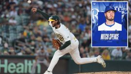 Was selected by the A’s from the Yankees in the Rule 5 draft and spent the entire season with Oakland...Went 8-10 with a 4.58 ERA and .786 opponents OPS in 35 games, including 24 starts, in his Major League debut...Began the season in the bullpen and was 3-1 with a 4.26 ERA and .656 opponents OPS in 11 relief appearances when he was moved into the starting rotation on May 17...Went 5-9 with a 4.64 ERA and .809 OPS in his 24 starting assignments...Ranked third among Major League rookies in innings pitched (151.1), tied for sixth in wins, tied for eighth in games started and ninth in strikeouts (126)...Allowed the most hits (165), tied for second in most losses (10), ranked third in most runs (79), issued the fourth most walks (44) and tied for the fifth most home runs (20)...His 126 strikeouts ranked seventh most in Oakland history by a rookie...Averaged 2.62 walks per nine innings...Had a team-leading eight wild pitches, which tied for fifth most in the Majors among all pitchers...Averaged 70.9 pitches per game, which were the fewest in the Majors among pitchers with 150 or more innings pitched...Allowed a .276 opponents batting average, which broke down to .267 (87-for-326) with a .750 OPS against right-handed hitters and .287 (78-for-272) with an .829 OPS against lefthanders...Issued 29 of his 44 walks to righties...Opponents hit .306 with 10 of his 20 home runs with runners on base...As a starter, he had a .249 opponents batting average the first time through the order, .303 the second time and .324 the third time...Posted a 2.81 ERA in seven relief appearances in April...Then logged a 4.19 ERA or higher in each of the final five months...Compiled a 6-7 record and a 3.54 ERA in 23 night games...Was 2-3 with a 6.42 ERA in 12 games during the day...Was 4-5 with a 3.99 ERA in 17 home games, 4-5 with a 5.18 ERA in 18 road games...Surrendered 13 of his 20 home runs on the road. Stranded his only inherited runner in relief...First batters faced were 3-for-10 (.300) with a walk...Tossed at least three innings in six of his 11 relief appearances...Logged six innings or fewer in 21 of his 24 starts...Allowed a .357 batting average to the number three hitter in the order and a .371 average to the four hitter.