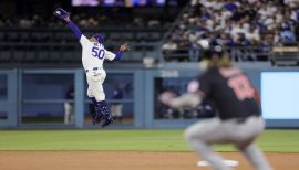 Had another Gold Glove and Silver Slugger performance in his first season with the Dodgers, while leading the team in runs and home runs (tied with A J Pollock)...finished second on the team in hits (64) and RBI (39)...On Aug. 23 against Colorado, became the 19th player to have a multi-homer (two), multi-stolen base (two) game…becoming the first Dodger to accomplish the feat...Ranked among the NL leaders in hits (64, T-10th), runs (47, 4th), batting average (.292, 16th), OBP (.366, 17th), SLG (.562, 13th), steals (10, T-5th) and homers (16, T-3rd). Betts went 18-for-41 (.439) with runners in scoring position, the third best mark in the Majors, and was at his best late in games, posting a .343 (24-for-70)/.370/.643 slashline from the seventh inning and later...Singled off San Francisco LHP Andrew Suarez in the 6th inning on Aug. 27 for his 1000th career hit...Batted .296 (21-for-7 1) in the postseason with eight doubles and t wo home runs…in the clinching Game 6 of the World Series, went 2-for-4 with a double and a home run...Homered in Game 6, becoming the ninth player in MLB history to homer in multiple World Series clinching games…he is the second player to do it with two different teams (other: Reggie Jackson)... His eight doubles tied a Major League record for most doubles in a single postseason (David Freese – 2011, Albert Pujols – 2011, Ben Zobrist – 2015)...On Aug. 13, he homered three times against the Padres, joining Hall-of-Famer Johnny Mize and Sammy Sosa as the only players in MLB history with six career three-homer games.