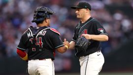 Acquired by Arizona from Seattle at the trade deadline for INF Josh Rojas, INF Ryan Bliss and OF Dominic Canzone...In 20 games with the D-backs, went 0-1 with 13 saves, a 3.57 ERA (seven ER in 17.2 IP) and 20 strikeouts...In 45 games with the Mariners, went 3-1 with 21 saves, a 2.93 ERA (14 ER in 43.0 IP). 1.02 WHIP and 60 strikeouts...Set career highs in saves (34) and matched his career-high in games (65)...Ranked among AL save leaders in April (third, seven) and July (T-third, seven) … ranked among NL save leaders in August (T-fifth, seven) and September (T-third, six)…Made his D-backs debut on Aug. 5 in Minnesota and struck out the side...Recorded a save in 13 of his last 14 opportunities from Aug. 6 to Sept. 27...Did not allow an earned run in eight of nine road games with Arizona, including his last seven...Limited hitters to a .220 average (22-for-100) with runners on base...Opponents hit .191 (18-for-94) off his sweeper, with 33 strikeouts and a 30.9 whiff percentage...Held hitters to a .220 average (28-for-127) off his four-seam, with 47 strikeouts and a 28.4 whiff pct.
