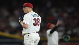 Acquired by Arizona from Seattle at the trade deadline for INF Josh Rojas, INF Ryan Bliss and OF Dominic Canzone...In 20 games with the D-backs, went 0-1 with 13 saves, a 3.57 ERA (seven ER in 17.2 IP) and 20 strikeouts...In 45 games with the Mariners, went 3-1 with 21 saves, a 2.93 ERA (14 ER in 43.0 IP). 1.02 WHIP and 60 strikeouts...Set career highs in saves (34) and matched his career-high in games (65)...Ranked among AL save leaders in April (third, seven) and July (T-third, seven) … ranked among NL save leaders in August (T-fifth, seven) and September (T-third, six)…Made his D-backs debut on Aug. 5 in Minnesota and struck out the side...Recorded a save in 13 of his last 14 opportunities from Aug. 6 to Sept. 27...Did not allow an earned run in eight of nine road games with Arizona, including his last seven...Limited hitters to a .220 average (22-for-100) with runners on base...Opponents hit .191 (18-for-94) off his sweeper, with 33 strikeouts and a 30.9 whiff percentage...Held hitters to a .220 average (28-for-127) off his four-seam, with 47 strikeouts and a 28.4 whiff pct.