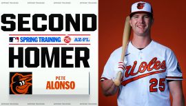 Ranked third in the NL with 37 homers, tied for seventh with 67 extra-base hits and 11th with 291 TB...He tied for 11th in the league with 94 RBI, was 13th with a .519 SLG and 15th with an .863 OPS... His 37 long balls tied for 11th-most in a single season in Mets history...He is the sixth player in club history with multiple seasons of 35+ home runs...Joined Mike Piazza, Darryl Strawberry, Howard Johnson and Dave Kingman (three each) and Carlos Delgado (two)... Is the first Met with multiple seasons of 25+ homers on the road...Carlos Beltrán (2006) is the only other Met to reach that mark even once...The only other players to have multiple years with 25+ road home runs since 2000 are Barry Bonds, Nelson Cruz, Ryan Howard, David Ortiz, Albert Pujols, Alex Rodriguez and Sammy Sosa... Performed better away from Citi Field, sporting a .288/.373/.618 slashline on the road compared to a .234/.313/.414 line at home...He hit a major league-leading 25 home runs on the road and collected 61 RBI away from home, good for the fourth-most in MLB...His .991 road OPS ranked fourth in the majors... Hit in 11-straight games from August 15-26, the longest hitting streak of his career...Had a 17-game road hitting streak from Aug. 16-Sept. 22 (.358/.421/.866)...It was the longest such hitting streak by a Met since David Wright's 20-gamer from April 14-May 21, 2012... Had a .785 OPS at home with nine homers and 20 RBI in the second half compared to a .656 OPS with three homers and 13 RBI at Citi Field before the break...Had 11 homers and 24 RBI in his last 42 home games after having one homer and nine RBI in his first 33 home games... Led the NL with 16 home runs off LHP...Homered every 10.56 at-bats vs. LHP, first in the NL and fifth in MLB... Narrowly missed posting the highest HR rate vs. LHP in Mets history...Dave Kingman's 10.55 AB/HR vs. southpaws in 1976 edges Alonso's rate by 0.01 AB/HR... Put up the lowest strikeout rate (19.9 percent), by far, of his career...Struck out in 27 of his 87 PA in April (31 percent), then dramatically cut down on Ks for the rest of the season, whiffing just 18 percent of the time from May 1 onward...K rate by month: April, 31%; May, 18.1%; June, 16.1%; July, 17.9%; Aug., 21.1%, Sept./Oct., 17.6%.