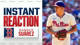 Set career marks in wins (10), innings (155.1), SO (129) and starts (29) in his first full season as a starter; his 29 starts were most by a Phillies LHP since 2014 (Cole Hamels, 30)...Was the 2022 Fielding Bible Award winner at pitcher...His nine Defensive Runs Saved were more than any pitcher in MLB by three and the most by a Phillie since 2002, the year to which the stat can be tracked...Did not make an error in a career-high 44 chances over 155.1 IP and did not allow a stolen base...Had a career-long 21.0-inning scoreless streak end in the first inning of his season debut on 4/11 vs NYM (streak started 9/20/21 vs BAL)...His first start also ended a streak of eight straight starts with at least 5.0 IP and two or fewer runs, T-2nd-longest by a Phillie since 1893...Did not allow more than one hit to LHH in 13 consecutive starts, 9/4/21-5/14/22, the longest such streak by a Phillie since Dennis Bennett, 5/21-8/5/62 (14)...Had a streak of 21 starts allowing three earned runs or fewer, 9/30/18-5/25/22, the longest by a Phillie since Cole Hamels in 2014 (22)...Had faced 215 consecutive LHH without allowing a HR prior to surrendering one to Eric Hosmer on 6/23 at SD...Was on the 15-day IL, 6/30-7/15, with a low back spasm...Posted a 3.05 ERA (89 ER, 262.2 IP) over his first 100 career appearances (32 starts), 5th-lowest by a Phillie through 100 career appearances (min. 1 start) since 1912...Had three straight starts of at least 5.0 IP and no earned runs, 7/16-30; ultimately had a 21.0-inning streak with no earned runs allowed end on 8/6 vs WSH...Posted a 1.02 ERA (4 ER, 35.1 IP) and 0.91 WHIP (8 BB, 24 H), 1 HR in seven starts, 7/16-8/17...Became the first Phillie to allow four or fewer earned runs over a six-start span since Cliff Lee in Aug.-Sept. 2011...Had a 17.0-inning scoreless streak, 8/12-23, the 2nd-longest by a Phillie all season and second-longest of his career...Did not allow a home run in five straight starts, 8/12-9/4, the 2nd-longest such streak of his career...Posted a 2.23 ERA (16 ER, 64.2 IP), 6/7-9/29 ...Was the first Phillie to allow three earned runs or fewer in 11 straight road starts since 2014, when Cole Hamels went the entire season doing so (16 starts)...Had a 2.95 ERA (25 ER, 76.1 IP) over his final 14 starts after returning from the IL... Held the 129 LHH he faced to a .197/.234/.303 slash line with just two home runs, five walks and 24 strikeouts...Was 2-0, SV, 1.23 ERA (2 ER, 14.2 IP) in five postseason games (3 starts); included a 0.79 ERA (1 ER, 11.1 IP) in the NLCS and WS Became the only Phillie ever with a win in a start and a save in relief in the same postseason, doing so all in one series (NLCS)...His save came in Game 5 of the NLCS at CBP, which clinched the Phillies’ eighth NL pennant...Pitched 5.0 shutout innings and allowed three hits in Game 3 of the WS, becoming the first Phillie ever to deliver at least 5.0 scoreless IP in a WS game...Was the first international signee to make a postseason start for the Phillies and his three starts tied him with Pedro Martinez for most ever by a non-U.S.-born pitcher.