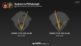 Was on Venezuela’s roster for the World Baseball Classic but did not pitch due to a left elbow strain...Opened the season on the 15-day IL with a left elbow strain, 3/27-5/12; included rehab assignments to Reading (AA) from 4/27-5/1 and Lehigh Valley (AAA) from 5/2-12...Made his Phillies season debut in a start on 5/13 at COL (ND, 4.0 IP, 3 ER)...His 48.5% ground ball percentage was the 10th-best in the National League (min. 100.0 IP)...Limited the 93 LHH he faced to a .218/.244/.368 slash line (.612 OPS)...With his curveball, held batters to a .143 AVG (12-84), which ranked fifth in the NL (min. 50 PA)...Logged 11 quality starts, which was T-3rd-most on the staff with Taijuan Walker despite making only 22 total starts...On 9/10 vs MIA, carried a no-hitter into the seventh inning and struck out a career-high 10 batters; it marked the first time in his career he pitched at least 5.0 innings and allowed two or fewer hits...Had a five-game streak of at least 6.0 IP and one or no runs allowed from 6/4-27; became the ninth Phillie to have such a streak dating back to 1893 and the first since Cole Hamels did so from 7/19-8/9/14...Posted a 17.0-inning scoreless streak from 6/9-20, which was the longest of the season for any Phillies pitcher...Had a 1.08 ERA (4 ER, 33.1 IP) in June, which was the 3rd-best in MLB; in that span, struck out 33 batters while holding opponents to a .202 AVG (24-119)...Allowed only two HR in his first seven starts (37.2 IP)...Had a road ERA of 2.75 (18 ER, 59.0 IP), which ranked 3rd in the NL (min. 50.0 IP)...Had three starts in which he generated a career-high 14 swings and misses (6/9 vs LAD, 8/13 vs MIN and 9/16 at STL)...On the 15-day IL with a right hamstring strain, 8/16-31...Made four starts in the postseason and went 1-1, 1.93 ERA (4 ER, 18.2 IP) with 19 SO to 2 BB...Became one of two pitchers in the modern era to allow 10 or fewer baserunners in their first 3 starts of a postseason (1-0, 0.64 ERA, 1 ER, 14.0 IP, 2 BB, 13 SO)...Started and earned the win in the Phillies’ NLDS clincher on 10/12 vs ATL (5.0 IP, 1 ER).
