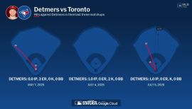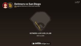 Made Angels' Opening Day roster for first time in career and totaled 25 big league starts across two Major League stints...Entered year rated by Baseball America as top prospect in Angels' organization, the top left-handed pitching prospect in all of baseball and the #27 overall prospect in the game...Pitched 12th no-hitter in Angels' history (10th individual no-hitter), May 10 vs. Tampa Bay...Allowed just two baserunners (one walk & one reached on error)...Second Angels' rookie to throw a no-hitter, joining Bo Belinsky (May 5, 1962 vs. Baltimore)...At 22 years, 306 days, Detmers was the youngest MLB pitcher to throw a no-hitter since Anibal Sanchez (22 years, 191 days) for Marlins, Sept. 6, 2006...10th MLB pitcher all-time to throw a no-hitter within his first 11 career games...Only MLB pitcher with an individual no-hitter during 2022 season...Earned A.L. Pitcher of the Week honors for May 9-15...In 2nd inning, July 31 vs. Texas, pitched third immaculate inning in Angels' history after striking out Ezequiel Duran, Kole Calhoun and Charlie Culberson on nine pitches...Joined Nolan Ryan (July 9, 1972 vs. Boston) and Garrett Richards (June 4, 2014 at Houston) as only Halos pitchers to accomplish the feat...Also set a career high in that game with 12 strikeouts...Among A.L. rookies (min. 100 IP), ranked second in opponent batting average, third in ERA, strikeouts and WHIP (1.21) and tied for third in wins...Did not allow a home run in 17 of 25 starts...Held opponents homerless through final 39.0 innings of season and yielded just two HR in final 71.0 innings pitched...Made five starts in day games, going 3-1 with a 2.30 ERA (27.1 IP - 7 ER) and 28 strikeouts...Optioned to Triple-A Salt Lake June 22 and made one start for Bees, before returning to Angels' July 8 for remainder of season...Tallied 14 strikeouts in start for Bees, which matched Salt Lake franchise record; also Jered Weaver (2006) and Tyler Skaggs (2016)...Following return from Triple-A, pitched to a 3.04 ERA (71 IP - 24 ER) and 78 strikeouts in 13 starts.