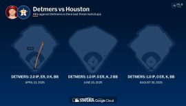 Made Angels' Opening Day roster for first time in career and totaled 25 big league starts across two Major League stints...Entered year rated by Baseball America as top prospect in Angels' organization, the top left-handed pitching prospect in all of baseball and the #27 overall prospect in the game...Pitched 12th no-hitter in Angels' history (10th individual no-hitter), May 10 vs. Tampa Bay...Allowed just two baserunners (one walk & one reached on error)...Second Angels' rookie to throw a no-hitter, joining Bo Belinsky (May 5, 1962 vs. Baltimore)...At 22 years, 306 days, Detmers was the youngest MLB pitcher to throw a no-hitter since Anibal Sanchez (22 years, 191 days) for Marlins, Sept. 6, 2006...10th MLB pitcher all-time to throw a no-hitter within his first 11 career games...Only MLB pitcher with an individual no-hitter during 2022 season...Earned A.L. Pitcher of the Week honors for May 9-15...In 2nd inning, July 31 vs. Texas, pitched third immaculate inning in Angels' history after striking out Ezequiel Duran, Kole Calhoun and Charlie Culberson on nine pitches...Joined Nolan Ryan (July 9, 1972 vs. Boston) and Garrett Richards (June 4, 2014 at Houston) as only Halos pitchers to accomplish the feat...Also set a career high in that game with 12 strikeouts...Among A.L. rookies (min. 100 IP), ranked second in opponent batting average, third in ERA, strikeouts and WHIP (1.21) and tied for third in wins...Did not allow a home run in 17 of 25 starts...Held opponents homerless through final 39.0 innings of season and yielded just two HR in final 71.0 innings pitched...Made five starts in day games, going 3-1 with a 2.30 ERA (27.1 IP - 7 ER) and 28 strikeouts...Optioned to Triple-A Salt Lake June 22 and made one start for Bees, before returning to Angels' July 8 for remainder of season...Tallied 14 strikeouts in start for Bees, which matched Salt Lake franchise record; also Jered Weaver (2006) and Tyler Skaggs (2016)...Following return from Triple-A, pitched to a 3.04 ERA (71 IP - 24 ER) and 78 strikeouts in 13 starts.