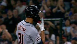 Appeared in a career-high 157 games with the Tigers, slashing .258/.313/.493...Earned his first career AL Silver Slugger Award...Named a starting outfielder to the All-Star game, his second consecutive All-Star Game appearance and first start...Recorded seven hits, two RBI and one home run in the postseason...Recorded 36 home runs, 31 doubles, 36 homers and 111 RBI, becoming the second Tiger in the 125-season history of the franchise to reach those numbers in his age-24-or-younger season, joining Hank Greenberg, who did so in 1935 (46 doubles/36 homers/168 RBI)...Greene (2025), Greenberg (1935, 1937, 1940) and Miguel Cabrera (2008, 2010, 2012) own the only seven individual seasons in the history of the franchise that reach those totals, regardless of age...Only five other Major Leaguers in the past 20 years have his current totals in their age-24-or-younger season: Rafael Devers (BOS, 2021), Cody Bellinger (LAD, 2019), Nolan Arenado (COL, 2015), Mike Trout (LAA, 2014) and Prince Fielder (MIL, 2007)...Became the second left-handed hitter in 125 seasons of club history to reach 32 homers prior to the start of September, joining Norm Cash, who did so in 1961 (32 homers) and 1962 (34)...Hit the longest home run by any Tiger in the statcast era and tied for the longest grand slam in MLB with his 471 foot grand slam on Aug. 26 against the Athletics...with that grand slam, he became only the fourth Tiger in 125 seasons of club history to reach 32 homers in a season at age 24 or younger, the first since Matt Nokes also hit 32 homers in 1987... he is the first Tigers left-handed hitter to reach 99 RBI in his age 24 or younger season in the last 46 years and the third to do so in the last 50 years, joining Steve Kemp (105 RBI in 1979) and Jason Thompson (105 RBI in 1977)...Hit his 30th home run of the season on Aug. 22, becoming the first Tigers left-handed hitter to reach 30 homers since Prince Fielder totaled 30 in 2012...became only the second left-handed hitter in club history to reach 30 homers prior to the start of September, joining Norm Cash who did so twice in 1961 (32 homers) and 1962 (34)...Drove in four runs on June 13 against Cincinnati, giving him 201 career RBI...at 24 years old, Greene is the first Tiger to reach 200 career RBI before the age of 25 since Travis Fryman did so in 1992 at 23 years old...Became the first player in MLB history to hit two home runs in the ninth inning of a game, doing so as part of Detroit’s eight-run, four-home run ninth inning against the Los Angeles Angels on May 2.