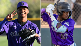 Rockies top prospect Robert Calaz hits two-run homer