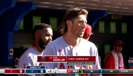 'Angels fan since Day 1' Aguilar makes MLB debut