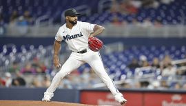 Sandy Alcantara followed up his NL Cy Young season going 7-12 with a 4.14 ERA (85 ER/184.2 IP) in 28 starts in 2023...Was placed on the Injured List on Sept. 6 (retro to Sept. 4) with a right forearm flexor strain and missed the remainder of the regular season (25 games)...At the time of his IL placement, ranked second in MLB in innings pitched (184.2) behind SF’s Logan Webb and was tied with KC’s Jordan Lyles with his three complete games...Tossed at least seven innings in 11 of his 28 starts; tied for the third-most starts in MLB...Surpassed Dontrelle Willis (757) and A.J. Burnett (753) in strikeouts as a Marlin, and now ranks third behind Josh Johnson (832) and Ricky Nolasco (1,001). Ranks fourth in club history in innings pitched, also trailing Josh Johnson (916.2), Dontrelle Willis (1022.2) and Ricky Nolasco (1,225.2)...Also ranks fourth in Marlins history in games started (138), T-8th in wins (41), and owns the second-best ERA (3.31) among pitchers with at least 100 GS, trailing only Josh Johnson (3.15)...With 10 strikeouts in his CG vs. NYY, Alcantara has recorded 13 career double-digit strikeout games. Is tied with Ricky Nolasco for the second-most such starts in Marlins history trailing only José Fernández (18)...On Aug. 12 vs. NYY, recorded his 12th career complete game and 11th career CG win. He also ranks third with his 12 complete games as a Marlin, behind A.J. Burnett (14) and Dontrelle Willis (15)...Threw his 10th career complete game win (11th CG) on July 26 at TB, becoming the first visiting pitcher to record a complete game win against the Rays at Tropicana Field since NYY’s Masahiro Tanaka on July 24, 2018...Went 3-7 with a 4.72 ERA (60 ER/114.1 IP) in 18 starts prior to the All-Star Break, in which opponents hit .254 against him with 33 walks and 94 strikeouts. Went 4-5 with a 3.20 ERA (25 ER/70.1 IP) in 10 starts in the second half, holding batters to a .247 AVG with 15 walks and 57 strikeouts...Tossed his fourth career shutout on April 4 vs. MIN with 100 pitches in a 1-0 Marlins victory. Marked the fourth time in club history that a Marlins pitcher has thrown a complete game shutout in the first six team games of the season and the first since Dontrelle Willis and Josh Beckett in 2005 in games four and six, respectively...Made his fourth Opening Day roster (2020, 2021, 2022, 2023)...Was named Miami’s Opening Day starter for the fourth consecutive season, becoming the first pitcher in Marlins history to make four consecutive Opening Day starts. Surpassed the previous mark of three, which he shared with Josh Beckett (2003-05) and Josh Johnson (2010-12). Alcantara was one of three pitchers in the Majors to make a fourth consecutive Opening Day start with the same team, joining Philadelphia’s Aaron Nola (sixth) and Cleveland’s Shane Bieber (fourth).