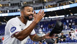 Sandy Alcantara is married to his wife Yorleni; they have one son, Yorlin...Alcantara is one of 11 children. He has seven sisters and three brothers. He left home at the age of 11 to live with his sister, Aridia, in Santo Domingo to attend better schools and baseball practices. While he was playing in the Arizona Fall League in 2017, his brother, Alexander, was killed in a motorcycle accident at the age of 17. Alcantara has dedicated his career to his younger brother and tattooed his nickname “Lexi” on his left arm...His glove features respects to both his brother and his mother, who he lost prior to the 2022 season...The Marlins produced a short film, called “22” based on Sandy’s historic 2022 season. Check it out at marlins.com/22...The house he bought to settle down with his family in South Florida was previously owned by Ivan “Pudge” Rodríguez...Is an avid gamer; has beat many of his teammates in “Call of Duty”...On Jan. 10, 2023, Sandy was awarded a key to the city of Miami from Mayor Francis Suarez. Jan. 10 is now “Sandy Alcantara Day” in the city...Traveled with the Marlins for the entirety of the 2024 season, despite spending the whole year in recovery from “Tommy John” surgery.
