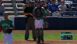 MEX@SD: Urias grabs a throw from Valle, gets the out