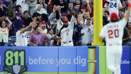 Completed another MVP season, and his last with the Angels, going 10-5 with a 3.14 ERA (46 ER/132.0 IP) and limiting batters to a .184 average and roping a .304/.412/.654 slashline with a 1.066 OPS...Clubbed 44 homers and drove in 95 runs while hitting .304/.412/.654 (1.066 OPS) as well as going 10-5 with a 3.14 ERA and 167 strikeouts in 23 starts (132 innings) on the mound ... he led the league home runs, on-base percentage, slugging percentage and OPS, and led the AL in extra-base hits (78) and total bases (325), while finishing second in intentional walks (21), third in triples (eight), fourth in batting average (.304), tied for fourth in runs (102) and fifth in walks (91). He also led AL pitchers in opponents’ batting average (.184) while finishing second in strikeouts per nine innings (11.4)...Voted the 2023 AL Most Valuable Player by the Baseball Writers’ Association of America, winning the award unanimously for the second time in his career and becoming the first player in Major League Baseball history to win the award unanimously more than once...Won the 2023 World Baseball Classic MVP award after leading Team Japan to the title. Ohtani batted .435 with a 1.345 OPS while going 2-0 on the mound with a 1.86 ERA, striking out Mike Trout of Team USA for the series-clinching out...Slugged four multi-homer games and 27 multi-RBI games … had his best pitching month in April, going 4-0 with a 2.25 ERA (7 ER/28.0 IP) with 36 strikeouts against 14 walks while holding batters to a .102 average … missed the last month of the season with an oblique injury.