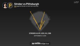 Pitched his first full Major League season and went 11-5 with a 2.67 ERA (39 ER/131.2 IP) and 202 strikeouts...Led rookie pitchers in the majors with 4.9 fWAR and 3.7 bWAR, and finished second in NL Rookie of the Year voting to teammate Michael Harris II...He is the quickest pitcher in baseball history to ever reach 200 strikeouts in a single season, doing so in his 130.0th inning...Hall-of-Famer LHP Randy Johnson held the previous record, reaching 200 strikeouts in 130.2 innings in 2001...Became the third rookie in franchise history to strike out 200 in a season, and the first in the modern era...The other rookies to reach 200 strikeouts were RHP Kid Nichols, who struck out 222 in 1890, and Bill Stemmyer, who fanned 239 in 1886. ..Just 16 rookies have done so in history, with Yu Darvish being the last to do so (221 strikeouts in 2012)...His 13.8 strikeouts per 9.0 innings is the highest by a rookie pitcher in MLB history (min. 12 starts)...Chicago’s Kerry Wood held the previous mark with 12.6 K/9.0 IP...No pitcher in Braves franchise history has pitched at least 100 innings in a season and fanned even 11.0 batters per 9.0 innings...In fact, just two pitchers, Brandon Beachy with 10.7 in 2011 and Charlie Morton with 10.5 in 2021, have been above 10.0...Opened the season pitching out of the bullpen, and moved into the rotation on May 30 at Arizona...Made 11 appearances out of the bullpen and went 1-1 with a 2.22 ERA (6 ER/24.1 IP)...In 20 starts, went 10-4 with a 2.77 ERA (33 ER/107.1 IP)...Prior to his move into the rotation, Atlanta was 23-25 and its starters had pitched to a 4.38 ERA... From the date of Strider’s first start, May 30, to the end of the season, the Braves went 78-36 and the starters pitched to a 3.46 ERA...Ranked 11th in the majors with 202 strikeouts... However, did so in just 131.2 innings...Each of the 10 pitchers with more threw at least 166.0 innings on the season...Among pitchers to throw at least 100.0 innings on the season, Strider’s 13.81 K/9.0 IP were easily most in the Majors, over 1.5 strikeouts more than the closest pitcher...Blake Snell fanned 12.02 batters per 9.0 innings to rank second...Fanned 202 and allowed just 86 hits on the season...Is the only pitcher in baseball history to record at least 200 strikeouts and allow fewer than 100 hits in a year...Together with teammate Charlie Morton, Became the first pair of Braves teammates to reach 200 strikeouts in a season since 1886, when Old Hoss Radbourn (218) and Bill Stemmyer (239) both reached the mark...Radbourn tossed 509.1 innings that year, while Stemmyer totaled 348.2 innings...Was named NL Rookie of the Month for July after going 2-1 with a 2.70 ERA (8 ER/26.2 IP) over five starts in the month...Five of the eight runs came in one start, July 17 at Washington...In his other four turns, he went 2-0 and pitched to a 1.19 ERA (3 ER/22.2 IP) with 37 strikeouts...Strider and Harris II teamed to win each of the final four Rookie of the Month awards for the National League... The Braves’ 12.4 total fWAR from their rookie class was the most in baseball...Started on Sept. 1 vs. Colorado and pitched a career-most 8.0 innings, holding the Rockies to just two hits and no runs in the effort...The Braves beat the Rockies, 3-0, to give Strider his ninth win of the season...Set the single-game, Atlanta-era record with 16 strikeouts in the game, which also ranks second in all-time franchise history…John Smoltz previously held the Atlanta-era record, punching out 15 on two occasions: May 24, 1992, at Montreal and April 10, 2005 versus the New York Mets…Warren Spahn holds the all-time Braves record with 18 punchouts on June 14, 1952 versus the Chicago Cubs...Strider’s 16 strikeouts are the most in a single game by a Braves rookie in franchise history...He became the fourth different rookie in the modern era to strike out at least 16 batters in a game without issuing a walk...Dwight Gooden had exactly 16 K’s in two consecutive starts in 1984 (9/12 vs. PIT, 9/17 @ PHI)...Kerry Wood struck out 20 against Houston on May 6, 1998, and Jon Gray fanned 16 Padres on Sept. 17, 2016...Research courtesy Elias...On July 7 vs. St. Louis, struck out a then career-most 12 batters...Recorded his first nine outs via strikeout...Since at least 1961, Strider is the only Braves pitcher with nine strikeouts through the first three innings of a game… Only two other pitchers have done it since the start of the 2020 season: Pablo López (MIA; July 11, 2021) and Aaron Nola (PHI; June 25, 2021)…He became the only pitcher in Braves history to have three games of at least 10 strikeouts within his first eight starts… League-wide, the last pitcher with at least three double-digit strikeout performances in his first eight career starts was Masahiro Tanaka, who did it for New York (AL) in 2014...Research via the Elias Sports Bureau...He allowed one hit and fanned 11 in his previous start at Cincinnati, and became the first rookie in MLB’s modern era (since 1900) with 11+ strikeouts and two-or-fewer hits in consecutive starts...Earned his 10th win of the season in his start, Sept. 7 at Oakland, and earned his 11th on Sept. 18 in his final turn of the season...Was the first Atlanta rookie to win 10 games in a season since Julio Teheran went 14-8 in 2013...Was one of just two rookie pitchers in baseball with 10 wins, and the only one in the National League...Minnesota’s Joe Ryan went 13-8 with a 3.55 ERA. 2022 Postseason....Started Game 3 of the NLDS at Philadelphia, and allowed three hits and five runs over 2.1 innings to take the loss…Walked two and fanned four...The start was his first since Sept. 18, as he missed the final 16 games of the season with a left oblique strain.