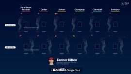 Produced one of the most effective rookie pitching campaigns in recent memory, finishing 10-4 with a 2.98 ERA (47ER/142.0IP), 141 strikeouts in 25 starts/appearances, earning AL Rookie of the Year runner-up honors … Among MLB rookie pitchers (min 70.0 IP) he finished second in win percentage (.714), second in ERA (2.98), third in strikeouts (141), third in opposing slugging percentage (.353), third in innings pitched (142.0) and fourth in wins (10) … Before Tanner and Kodai Senga (NYM), 2014 was the last season a rookie posted a sub-3.00 ERA (Jacob deGrom/Collin McHugh)...Became the first AL rookie pitcher with 10+ wins, 140+ strikeouts and a sub-3.00 ERA in their debut season since NYY’s Masahiro Tanaka in 2014 … His 3.6 bWAR was the highest by a Cleveland rookie pitcher since Dennis Eckersley (5.3) in 1975 … His 141 strikeouts through his first 25 career starts were the fifth-most in Cleveland history behind Greg Swindell (143), Shane Bieber (143), Danny Salazar (148) and Herb Score (180)…Won seven straight decisions from June 18 to Aug. 13, becoming the third rookie in franchise history to do so … The last rookie hurler to turn the trick for Cleveland was Gene Bearden (seven) in 1948 … During that stretch Bibee led the AL with a 2.09 ERA (14ER/60.1IP) … His 1.78 ERA (6ER/30.1IP) in July was the seventh-lowest ERA in a single month by a Cleveland rookie pitcher (min. 5GS) and the lowest since Cody Anderson in Sept., 2015 (1.38)...Held PHI scoreless over 7.0 innings in 1-0 victory on July 22 … Struck out six and walked none in another 7.0-shutout inning effort on Aug. 8 vs. Toronto…The outing came after fellow rookie arm Gavin Williams struck out 12 in 7.0-scoreless innings the day prior…The pair became the first duo of Cleveland rookies to throw at least 7.0-shutout innings in back-to-back starts since Albie Lopez and Jeff Mutis on 7/17-18/1993...In 12 starts at Progressive Field, tallied a 5-2 record with a 2.11 ERA (16ER/68.1IP) … Among starting pitchers (min 60.0IP), he had the lowest home ERA in AL and second-lowest in MLB behind SF’s Alex Cobb (1.95)...Went 8-1 with a 2.32 ERA (21ER/81.1IP) in 14 starts following a loss in 2023 … Among MLB pitchers (min 10 GS), Bibee owned the best ERA in the American League following a loss and trailed only LAD’s Clayton Kershaw (2.04) in MLB...Entered the 2023 season as the fifth-best prospect in the Guardians system; 65th overall in MLB according to MLB Pipeline… Made 3 starts at Triple-A Columbus, going 2-0 with a 1.76 ERA (3ER/15.1IP) … Was called up to the Major League level on April 26 vs. Colorado (W, 5.2IP, 1ER, 8SO) … Became the second pitcher in club history to with eight plus strikeouts and no walks in their MLB debut, joining Floyd Weaver (W 5.0IP, 8SO, 0BB) on Sept. 30, 1962.
