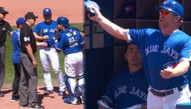 NYY@TOR: Leiper ejected, throws sliding mitts