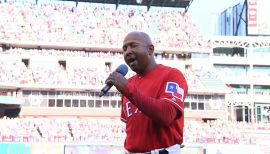 CLE@TEX: Beasley sings national anthem at Globe Life