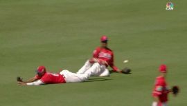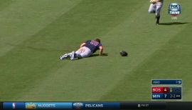 BOS@MIN: Harrison hustles, makes sliding grab in left