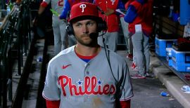 Ranked seventh in the NL in multi-hit games (49), T-8th in hits(170), ninth in steals (30) and 10th in runs (102)...Per Statcast data, his average sprint speed of 30.3 feet per second ranked fifth out of 582 qualified players for the second straight season...Named a Silver Slugger Award finalist...Became the first player in MLB history to steal 30 bases in a single season without being caught and has stolen 35 straight bases in the regular season dating to 9/6/22...Had 25 HR/25 SB for the second time in his career (2021) and was the sixth Phillie (ninth time) in history with a 25-25 season (last: Jimmy Rollins, 2007)...Slashed .337/.389/.668 from 8/4 through the end of the regular season with a 1.057 OPS that was 4th-highest in MLB in that span; began the season slashing .235/.290/.368 (.658 OPS)...Was the 4th-fastest active player to reach 600 career runs (868 G) behind Mookie Betts (778 G), Mike Trout (808 G) and George Springer (838 G)...Per Elias, was the first Phillie in the modern era (since 1900) with a triple in each of his team’s first 2 games of a season; the last major leaguer to accomplish the feat was Yasiel Puig (LAD) in 2016...Became the first Phillie to hit safely in his first seven career games (3/30-4/7) with the club since Grady Sizemore from 7/11-21/14, per Elias...Hit safely in 7 straight games to start a season for the second time in his career (.375, 12-32)...Tripled in consecutive games, 3/31-4/1, for the second time in his career; had five triples in a season for the first time since doing so each year from 2016-19...Registered his first multi-HR game as a Phillie on 6/5 vs DET, his first of three on the year (also, 8/19 at WSH and 8/28 vs LAA)...On 7/23 at CLE, became the first Phillie since Jean Segura in 2019 to collect 100 hits in his first 98 games with the club...Collected 26 RBI in August, the most by a Phillie in the month since Ryan Howard drove in 33 runs in August 2009...Hit in 20 straight games at CBP (.425, 34-80) from 8/4-9/8, the longest single-season home hitting streak by a Phillie since Scott Rolen in 1997 (20 G)...Slashed .381/.424/.813 (1.237 OPS) across 34 games from 8/4-9/12, including a season-high 16-game hitting streak from 8/19-9/8 after going 3-for-36 across his previous nine games...Reached base safely in 23 straight games from 8/16-9/12...On 8/19 at WSH, became the third player in Phillies history to homer twice in an inning (Von Hayes on 6/11/1985 vs NYM & Andy Seminick on 6/2/1949 vs CIN) and the first player in MLB history to do it off the same reliever, while he is just the third player in the expansion era (since 1961) to hit multiple HR in the same inning against a former team (Alex Rodriguez, 2007 and Mike Cameron, 2002); was his second game of the season with multiple hits in an inning after notching two hits in the opening frame on 4/16 at CIN...Was named NL Player of the Week, 8/28-9/3, his second career weekly honor (also, 9/27-10/3/21 with LAD) and was the first Phillies infielder to win a weekly award since Ryan Howard on 7/19/10...Had an RBI in a career-high 10 straight games from 8/26- 9/8, the fourth Phillie in the modern era with such a streak (5x) and the first since Bobby Abreu (10 G, 5/8-18/05)...Collected his 500th career RBI with a 110.5 mph HR on 9/4 at SD, the second-hardest-hit HR of his career...Became the fifth player since 1920 (when RBI became official) with a HR and 3+ RBI in four straight games (8/28-9/1), joining Ken Williams (1922), HOF Lou Gehrig (1931 & 1932), HOF Bill Dickey (1937) and Chris Davis (2013); was the first Phillie in the modern era (since 1900) to accomplish the feat...Homered in a club-record-tying five straight games from 8/28-9/2...On the paternity list, 9/5-7...Clubbed his 150th career HR on 9/12 vs ATL and became the second Phillie in team history (Mike Schmidt, 1976) with 10 HR in an 11-game span...Played his 1,000th ML game on 9/23 vs NYM...Began the 2023 postseason with a 10-game hit streak, tied with Lenny Dykstra (1993) for the longest streak to begin a postseason in Phillies history; hit safely in 14 straight postseason games from 10/11/22-10/20/23, tied for the ninth-longest such streak in MLB history...Became the fourth player in MLB history to steal 40 straight bases without being caught (regular/postseason combined) and the first since Jimmy Rollins from 2007-08...Became the first player in Phillies history with 4 hits in a postseason game in NLDS Game 4, 10/12 vs ATL...Clubbed three HR and tallied five RBI across 13 postseason games...In NLWCS Game 1, 10/3 vs MIA, became the fourth Phillie in team history to steal multiple bases in a game...In NLDS Game 1, 10/7 vs ATL, became the only player in Phillies history to steal multiple bases twice in a single postseason; Rickey Henderson (1999 NYM) was the last player with 2 multi-steal games in his team’s first three games of a postseason...Prior to the season, won a silver medal with Team USA in the World Baseball Classic and was named to the 2023 All-WBC Team...His 5 HR in the WBC tied a record set by Korea’s Seung Youp Lee in 2006 Hit a game-winning grand slam in the eighth inning on 3/18 vs Venezuela.
