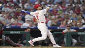Ranked seventh in the NL in multi-hit games (49), T-8th in hits(170), ninth in steals (30) and 10th in runs (102)...Per Statcast data, his average sprint speed of 30.3 feet per second ranked fifth out of 582 qualified players for the second straight season...Named a Silver Slugger Award finalist...Became the first player in MLB history to steal 30 bases in a single season without being caught and has stolen 35 straight bases in the regular season dating to 9/6/22...Had 25 HR/25 SB for the second time in his career (2021) and was the sixth Phillie (ninth time) in history with a 25-25 season (last: Jimmy Rollins, 2007)...Slashed .337/.389/.668 from 8/4 through the end of the regular season with a 1.057 OPS that was 4th-highest in MLB in that span; began the season slashing .235/.290/.368 (.658 OPS)...Was the 4th-fastest active player to reach 600 career runs (868 G) behind Mookie Betts (778 G), Mike Trout (808 G) and George Springer (838 G)...Per Elias, was the first Phillie in the modern era (since 1900) with a triple in each of his team’s first 2 games of a season; the last major leaguer to accomplish the feat was Yasiel Puig (LAD) in 2016...Became the first Phillie to hit safely in his first seven career games (3/30-4/7) with the club since Grady Sizemore from 7/11-21/14, per Elias...Hit safely in 7 straight games to start a season for the second time in his career (.375, 12-32)...Tripled in consecutive games, 3/31-4/1, for the second time in his career; had five triples in a season for the first time since doing so each year from 2016-19...Registered his first multi-HR game as a Phillie on 6/5 vs DET, his first of three on the year (also, 8/19 at WSH and 8/28 vs LAA)...On 7/23 at CLE, became the first Phillie since Jean Segura in 2019 to collect 100 hits in his first 98 games with the club...Collected 26 RBI in August, the most by a Phillie in the month since Ryan Howard drove in 33 runs in August 2009...Hit in 20 straight games at CBP (.425, 34-80) from 8/4-9/8, the longest single-season home hitting streak by a Phillie since Scott Rolen in 1997 (20 G)...Slashed .381/.424/.813 (1.237 OPS) across 34 games from 8/4-9/12, including a season-high 16-game hitting streak from 8/19-9/8 after going 3-for-36 across his previous nine games...Reached base safely in 23 straight games from 8/16-9/12...On 8/19 at WSH, became the third player in Phillies history to homer twice in an inning (Von Hayes on 6/11/1985 vs NYM & Andy Seminick on 6/2/1949 vs CIN) and the first player in MLB history to do it off the same reliever, while he is just the third player in the expansion era (since 1961) to hit multiple HR in the same inning against a former team (Alex Rodriguez, 2007 and Mike Cameron, 2002); was his second game of the season with multiple hits in an inning after notching two hits in the opening frame on 4/16 at CIN...Was named NL Player of the Week, 8/28-9/3, his second career weekly honor (also, 9/27-10/3/21 with LAD) and was the first Phillies infielder to win a weekly award since Ryan Howard on 7/19/10...Had an RBI in a career-high 10 straight games from 8/26- 9/8, the fourth Phillie in the modern era with such a streak (5x) and the first since Bobby Abreu (10 G, 5/8-18/05)...Collected his 500th career RBI with a 110.5 mph HR on 9/4 at SD, the second-hardest-hit HR of his career...Became the fifth player since 1920 (when RBI became official) with a HR and 3+ RBI in four straight games (8/28-9/1), joining Ken Williams (1922), HOF Lou Gehrig (1931 & 1932), HOF Bill Dickey (1937) and Chris Davis (2013); was the first Phillie in the modern era (since 1900) to accomplish the feat...Homered in a club-record-tying five straight games from 8/28-9/2...On the paternity list, 9/5-7...Clubbed his 150th career HR on 9/12 vs ATL and became the second Phillie in team history (Mike Schmidt, 1976) with 10 HR in an 11-game span...Played his 1,000th ML game on 9/23 vs NYM...Began the 2023 postseason with a 10-game hit streak, tied with Lenny Dykstra (1993) for the longest streak to begin a postseason in Phillies history; hit safely in 14 straight postseason games from 10/11/22-10/20/23, tied for the ninth-longest such streak in MLB history...Became the fourth player in MLB history to steal 40 straight bases without being caught (regular/postseason combined) and the first since Jimmy Rollins from 2007-08...Became the first player in Phillies history with 4 hits in a postseason game in NLDS Game 4, 10/12 vs ATL...Clubbed three HR and tallied five RBI across 13 postseason games...In NLWCS Game 1, 10/3 vs MIA, became the fourth Phillie in team history to steal multiple bases in a game...In NLDS Game 1, 10/7 vs ATL, became the only player in Phillies history to steal multiple bases twice in a single postseason; Rickey Henderson (1999 NYM) was the last player with 2 multi-steal games in his team’s first three games of a postseason...Prior to the season, won a silver medal with Team USA in the World Baseball Classic and was named to the 2023 All-WBC Team...His 5 HR in the WBC tied a record set by Korea’s Seung Youp Lee in 2006 Hit a game-winning grand slam in the eighth inning on 3/18 vs Venezuela.