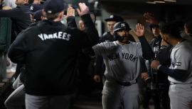 Appeared in 76 games for the Yankees, batting .190 (34-for-179) with 21R, eight doubles, 9HR, 31RBI, 22BB and 1SB...played in 69 games (52 starts) in centerfield...posted a .986 fielding percentage (2E/146TC)...Five of his nine home runs tied the game (one) or gave the Yankees the lead (four)...Made his Yankees debut on 3/30 at Houston (0-for-3, 1BB)...Recorded his first hit as a Yankee with a go-ahead three-run HR in the fourth inning on 4/26 at Milwaukee...Over a 21-start span from 6/6-7/14, hit .284/.359/.522 (19-for-67) with 11R, four doubles, 4HR, 15RBI, 8BB, 1HP and 2SF...reached base safely in 19 of those games...Reached base in 32 of his final 38 starts of the season from 6/6-9/29...hit safely in 24 of those games...Hit a game-winning three-run HR in the sixth inning on 6/9 vs. Los Angeles-NL...Reached base a season-high four times and recorded a season-high 3H on 7/14 at Baltimore (3-for-3, 2R, 1HR, 2RBI, 1BB)...hit a go-ahead RBI single in the second inning and a game-tying solo HR in the fifth...marked his most times on base in a game since 5/30/23 at Miami with San Diego (4TOB) and his most hits in a game since 5/3/23 vs. Cincinnati with San Diego (3H)...Drove in both of the Yankees’ runs in their 2-1 win on 7/10 at Tampa Bay, hitting a go-ahead RBI double in the second inning and a game-winning sac fly in the fourth inning (1-for-3, one double, 2RBI, 1SF)...Hit a game-tying double with two outs in the ninth inning on 7/27 at Boston (2-for-5, two doubles, 1RBI)...marked his eighth career hit (first of the season) that either tied the game (four) or gave his team the lead (four) in the ninth inning-or-later...was his first game with multiple XBH since 7/16/23 at Philadelphia with San Diego (two doubles)...Left the game in the fifth inning in Game 1 on 8/10 vs. Texas with a left-hand contusion after being hit by a pitch in the fourth inning...the initial CT scan and x-rays were negative...Hit a grand slam in the ninth inning on 9/4 at Texas (1-for-1, 1R, 1HR, 4RBI)...marked his second career grand slam (also 6/30/21 at Cincinnati with San Diego)...his four RBI marked a season-high and his most in a game since 9/8/23 at Houston with San Diego (4RBI).