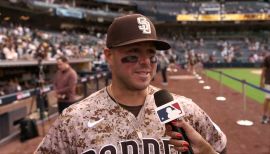 Split the season between SD and El Paso (AAA) and was named Pacific Coast League Rookie of the Year, league MVP and MVP of the Triple-A All-Star Game…also earned PCL Mid-Season All-Star honors, was a 2-time PCL Player of the Week award winner and was named a Minor League All-Star by Baseball America...Hit .399 (118-for-296) for ELP, with 27 2B, 1 3B, 27 HR and 89 RBI…joined Hunter Renfroe (2016) as the only Chihuahuas to earn PCL MVP honors and the 6th player to ever win both the PCL's MVP and Rookie of the Year award in the same season...He did not hit below .359 for a 30-day period while he was in Triple-A, and his batting average for the season never fell below .303…his average dipped to .303 just 8 games into the 2019 season on April 11, and he never went below .351 through the end of the season...Made his ML debut on April 26 at WSH and got his 1st hit with his PH single to LF off Kyle Barraclough, singling in the 5.5 hole, where his former coach at San Diego State University, Tony Gwynn, is was so fond of hitting...Recorded his 1st multi-hit game on May 2 at ATL, going 2-for-4 with his 1st and only triple of the season with 2 runs in SD's 11-2 victory...Hit his 1st ML HR on May 7 at NYM off Noah Syndergaard, a 2-run HR to LF in the 4th to tie the game 2-2...In his 1st stint with the big league club from April 26-June 5, slashed .235/.290/.357 over 34 games from April 26June 5...For ELP in June, hit .359 (28-for-78) with 10 HR and 27 RBI while posting a 1.272 OPS in just 21 games...Started at 3rd base for the PCL in the Triple-A All-Star Game on June 10 and was named MVP after hitting a solo HR in the PCL's 9-3 victory over the International League...Recalled by SD on August 16 and spent the rest of the season with the big league club, slashing .233/.298/.453 in 35 games...Homered in back-to-back games for the 1st time in his career on Sept. 1 at SF and Sept. 2 at ARI, including his 1st multi-HR game and a career-high 4 RBI on Sept. 1...After hitting just 2 HR in his 1st 48 career games, France led the Padres with 5 HR in September over 21 games…his 12 RBI in September matched his total for all other months combined (9 in May, 1 in June and 2 in August)...Appeared in 36 games at 3B, making 28 starts, and he appeared in 21 games at 2B, making 17 starts...tossed 2.0 innings of relief (2 appearances), allowing 1 run and 2 hits...Went 7-for-20 (.350) as a PH at the Major League level, posting a .381 OBP and .333 SLG...Was hit by a pitch twice on September 22 vs. ARI after homering in his 1st AB of the game...France and Fernando Tatis Jr. were the only Padres to be HBP more than once in a single game in 2019.