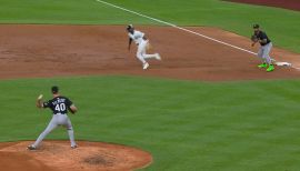 Tyler Gilbert picks off Jazz Chisholm Jr.