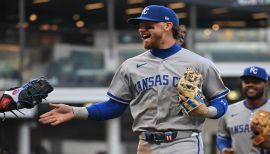 Established career highs in 2025 in games played (160), hits (164), doubles (33), home runs (32), RBI (113), walks (49) and runs scored (72)...Became one of eight players in Royals history to record at least 30 home runs and 30 doubles in a single season, and he was just the third left-handed hitter to do so, following George Brett in 1985 (38 2B, 30 HR) and John Mayberry in 1975 (38 2B, 34 HR)...Led all Royals with 32 home runs, which tied for the 10th most in the American League, trailing leader Cal Raleigh (60)...Recorded 113 RBI, which ranked third in the American League, behind only Seattle’s Raleigh (125) and New York’s Aaron Judge (114)...it marked the ninth-most RBI in a single season by a Royal, trailing Mike Sweeney’s club-record 144 RBI in 2000...Led the Majors with 32 go-ahead RBI in 2025, ahead of Judge’s 31...of his 32 home runs, 17 gave the Royals a lead, which tied for the sixth most go-ahead homers in the Majors...In 64 games following the All-Star break, he recorded 57 RBI, which ranked second in the Majors over that stretch, behind Philadelphia’s Kyle Schwarber (63)...his 17 home runs after the break tied for the 11th most in the American League, five homers behind the leaders...Kansas City had five sets of back-to-back home runs, four of which included Vinnie...his four back-to-back homers tied for fourth by a Royal in a season (since 1974), trailing Salvador Perez in 2017 (6), Mike Moustakas in 2017 (5) and Jermaine Dye in 2000 (5)...Earned American League Player of the Week honors twice in 2025, from June 2-8 and Aug. 18-24...his three career such awards are tied with Carlos Beltrán for sixth in Royals history...from June 2-8, he tied for the Major League lead in average (.500) and hits (13)...over the week of Aug. 18-24, he batted .379 (11-for-29) and led the Majors with six home runs...Won the 2025 Mike Swanson Good Guy Award, which honors the Royal who best exemplifies a cooperative spirit with the beat writers who cover the team...Homered in five straight games from Aug. 18-22 to match a franchise record, previously done by Mike Sweeney from June 25-29, 2002 and Perez from Aug. 25-29, 2021...it was one of two five-game homer streaks in the Majors in 2025, along with Shohei Ohtani’s five-game streak from July 19-23...Was named the Royals Player of the Month for August after leading the American League with 29 RBI in 28 games and his 10 home runs tied for third in the AL…his 29 RBI fell two shy of the Royals record for August, set by Sweeney in 2000 (31), and his 10 home runs fell two shy of Chili Davis (1997) and Perez (2021) for the Royals August record...Recorded an extra-base hit in seven straight games from Aug. 18-24, just 1 shy of Danny Tartabull’s club record (8, June 25-July 3, 1991)...Had two multi-homer games, including on July 4 in Arizona, where he tallied a career-high six RBI...Hit safely in a career-high 12 consecutive games from May 30-June 12, which came in the midst of a career-best 28-game on-base streak from May 12 June 13, over which he slashed .364/.429/.495 (39 for-107)...it was the sixth-longest on-base streak by any American League player in 2025...Ranked eighth in the American League with 232 hard hit balls (at least 95.0 mph exit velocity), according to Baseball Savant...he made 122 hard-hit outs, which matched Juan Soto for the ninth most in the Majors, trailing leaders Vladimir Guerrero Jr. and Yandy Díaz, who both had 140 hard-hit outs...Drove in 28 runs in the first inning, which were the second-most first-inning RBI in the Majors, behind only Aaron Judge’s 30...Had a bases-clearing single on April 4 vs. Baltimore, becoming the first Royal to do so since George Brett on June 20, 1985.