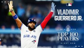 Vladimir Guerrero Jr...Son of nine-time All-Star and 2004 AL MVP Vladimir Guerrero, who was inducted into the Hall of Fame in 2018 with Vladimir Jr. in attendance...Nephew of former Major Leaguer Wilton Guerrero...Signed by the Toronto Blue Jays as a 16-year-old on July 2, 2015...Ranked 4th on MLB.com’s Top 30 International Prospects list at the time...Ranked as the 3rd-best prospect by both Baseball America and MLB prior to the 2018 season...Ranked fourth by Baseball Prospectus...Listed as the top overall prospect heading into the 2019 season by MLB, Baseball America and Baseball Prospectus...Was rated with an 80 hit tool for the second straight year, the highest ever given out by MLB Pipeline...Took part in the Toronto portion of the 2023 Blue Jays Winter Tour.