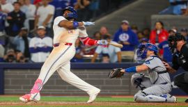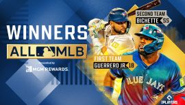 Named an All-Star for the third time in his career, doing so in three consecutive seasons...Became the first player in franchise history to win the Home Run Derby...Along with Vladimir Guerrero Sr., became the first father-son duo ever to each win the event....Led the team in home runs (26) and RBI (94)...His 249 hard-hit balls (95+ MPH) ranked third in the AL (fourth in MLB)...Drove in the game-winning run on Opening Day, March 30 at STL, with a sac fly in the ninth, part of a 2-for-4 effort with three RBI and a hit-by-pitch...Blasted his fifth homer of the year on April 23 at NYY and his 12th career jack at Yankee Stadium, his most in any road ballpark...Hit a ninth-inning grand slam as part of a 3-for-6 night on May 23 at TB, the fourth slam of his career...Drove in six runs, one shy of his career high (seven on April 27, 2021 vs. WAS)...Went 2-for-4 with a double and a three-run homer on June 23 vs. OAK, his 10th jack of the year and his first at Rogers Centre...Hit his 14th homer on July 14 vs. ARI to become the first Home Run Derby champ ever to go deep in his first plate appearance after the All-Star break...Finished 2-for-3 with two RBI including his 21st home run of the year on Sept. 3 at COL...Matched Fred McGriff for the most home runs by a Blue Jay in his first five MLB seasons (125)...Went 2-for-4 with his 23rd blast on Sept. 15 vs. BOS, homering in consecutive games for the fifth time of 2023 (20th career)...Drilled his 24th home run of the year on Sept. 16 vs. BOS, homering in three straight games for the fourth time in his career (last: June 24-26, 2021)...Reached 400 career RBI in his 649th game, becoming the second-fastest player in team history to reach the mark (Carlos Delgado - 597G) and the youngest to do so at 24 years and 184 days old (Lloyd Moseby - 26.187)...Reached base safely five times in a game for the first time in his career (2-for-3, 3BB)...Crushed his 25th and 26th home runs of the season on Sept. 24 at TB, his first multi-homer game of the year (ninth career).