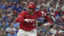 NL Ranks: Hit by Pitch (12, T-eighth)...Missed a combined 72 games due to fractures to his left arm (May 8-June 23) and right middle finger (Aug. 25-end of season)...Finished 3rd on the Cardinals in bWAR (3.0) despite appearing in only 84 games...His team-leading 138.7 OPS+ was a new single-season career high and ranked 24th-best in MLB among players to appear in 81+ games...Ranked seventh in walk percentage (12.6%) among Major Leaguers with 350+ PA (also a career best)...Among Major Leaguers with 500+ competitive swings, boasted the 13th-fastest average bat speed (75.9 mph) according to Baseball Savant...Batted .291/.412/.525 (52-for-179) with 11 homers and 26 RBI in 51 games as a catcher. Among Major Leaguers with 215+ plate appearances while at catcher, ranked first in on-base percentage, slugging, OPS (.937), and secondary average (.413), second in BABIP (.366), and fourth in batting...Appeared in 33 games as the designated hitter, batting .223/.333/.388 (27-for-121) with four HR, 10 RBI...Enjoyed a career-high 14-game hit streak (.347/.467/.592) from April 1-21...Slugged team-leading .538 in 21 interleague games, 13th-highest in the NL...Produced a .907 OPS in 42 road games and .936 OPS in 48 night games. In 23 road night games, batted .341/.420/.648 with a 1.068 OPS, third-highest in MLB among players with 85+ plate appearances...Produced a team-leading 1.011 OPS in Cardinals wins (37) and .707 in losses (47)...Averaged team-leading 91.6 mph exit velocity by Statcast measures. Recorded the hardest-hit ball of the season by a Cardinal, a 115.3 mph single on July 22 at Pittsburgh...Averaged team-leading 410 feet on his 15 home runs, 16th-longest among all Major Leaguers with 15+ HR...Suffering a fractured left arm after getting hit on a swing by J.D. Martinez in second inning May 7 vs. New York Mets, missing 40 games...At the time of his injury on May 7, ranked among NL leaders in OBP (.394, ninth), slugging (.538, seventh), doubles (10, T-fifth), extra-base hits (16, T-sixth), hit by pitches (3, T-10th) and homers (6, T-13th)...Recorded 16 RBI and team-leading seven homers (T-ninth in NL) in July, establishing a new single-month high with the Cardinals. Only Seattle’s Cal Raleigh (9) homered more among catchers...Hammered 150th career home run on July 28 vs. Washington, a 402-foot blast into Big Mac Land...Led St. Louis in slugging (.816) and OPS (1.220) on the first pitch of at-bats...Fractured his right middle finger after being hit by a pitch in the fourth inning on Aug. 24 at Minnesota, ending his season...Caught four shutouts (T-13th in NL) and threw out 11 of 48 runners attempting to steal (22.9%).