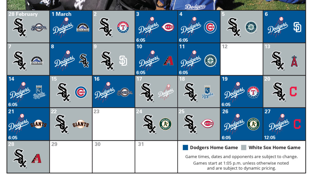 The White Sox open the CR-G schedule against the Milwaukee Brewers on Sunday, Feb. 28. The Dodgers debut at home the following day when they welcome the Colorado Rockies on Monday, March 1.
