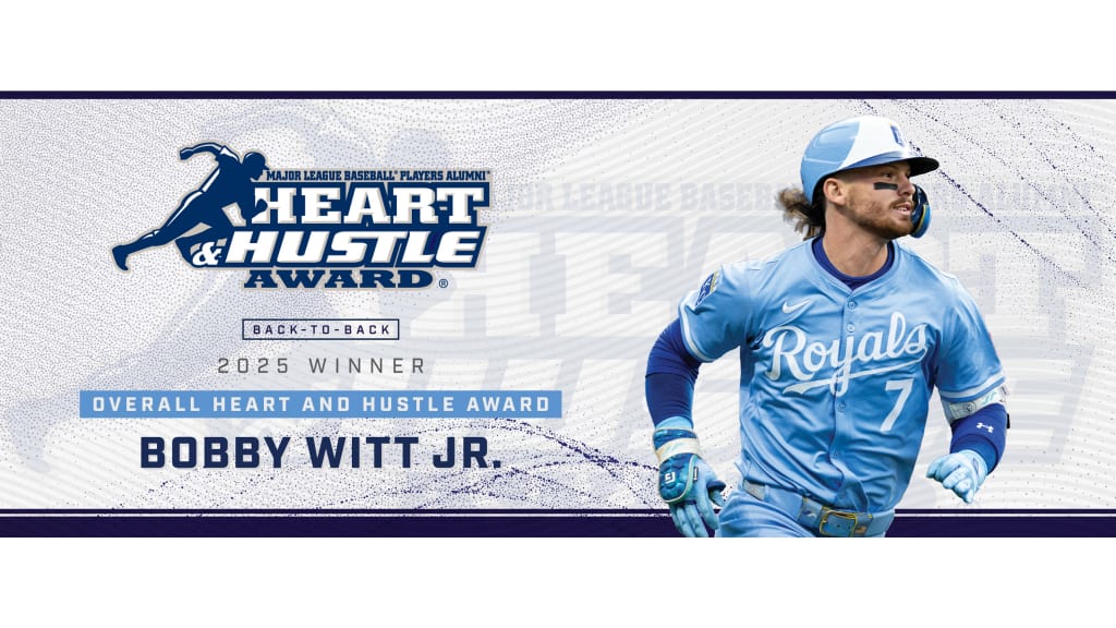Colorado Springs Colo. - The Major League Baseball Players Alumni Association (MLBPAA) is proud to announce Kansas City Royals infielder Bobby Witt Jr. as the overall winner of the 20th Annual Heart and Hustle Award, marking his second consecutive year receiving this honor. This prestigious award recognizes active players who exemplify a true passion for the game of baseball and embody its core values, spirit and traditions.