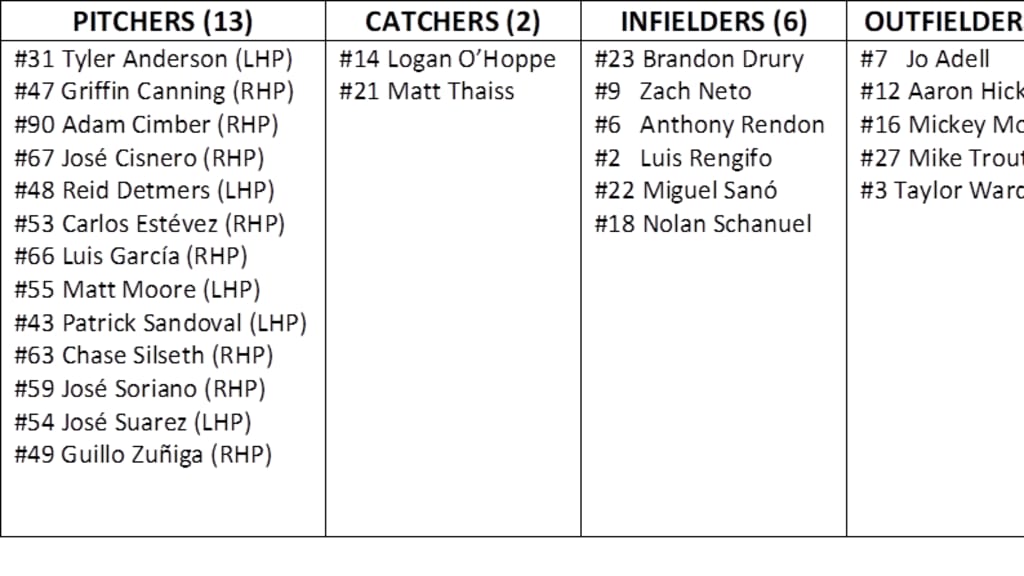 Following is a breakdown by position of the Angels 2024 Opening Day 26-man active roster: