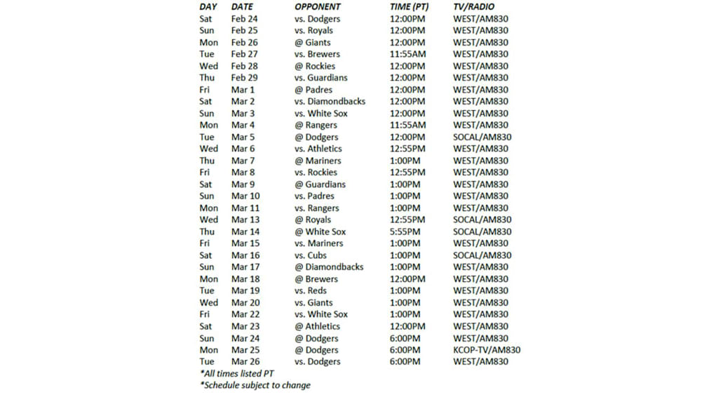 The complete 2024 Angels Spring Training broadcast and radio schedule is as follows: