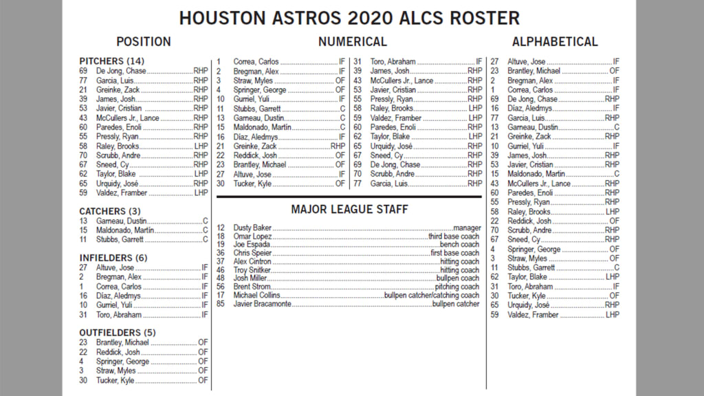 Houston Astros set 2020 American League Championship Series roster