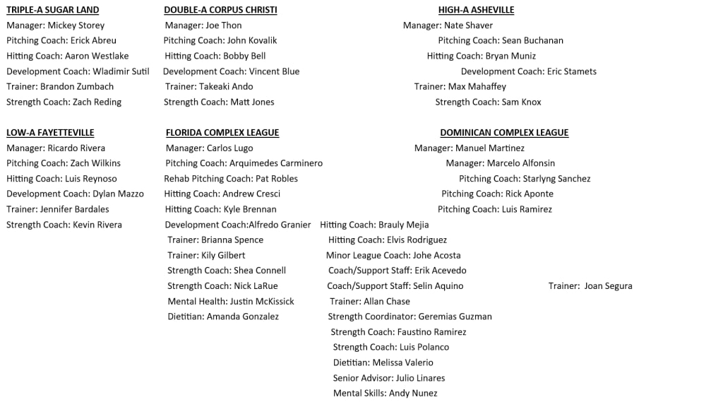HOUSTON, TX — The Houston Astros Player Development Department has announced its minor league field staff for the 2023 season: