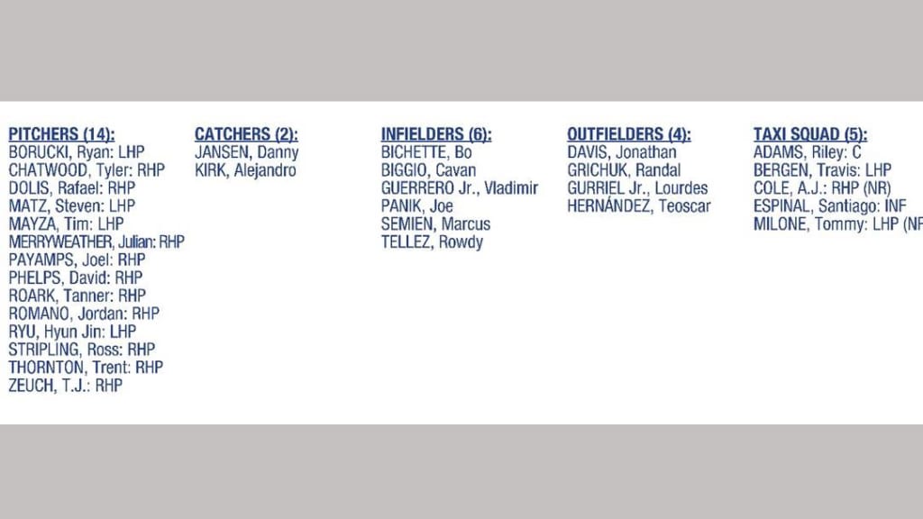 The Toronto Blue Jays have announced the 26-man active roster and five-player taxi squad for Opening Day. A complete list is below.