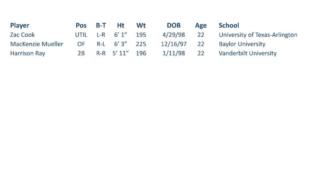 The Toronto Blue Jays have signed three non-drafted free agents. A complete list of newly signed players follows: