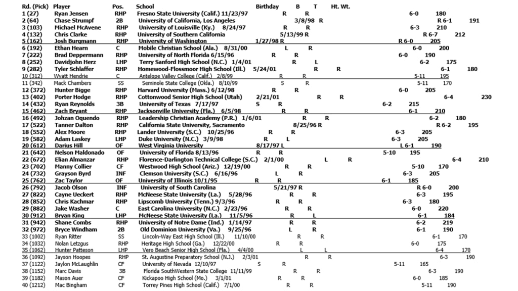 CHICAGO – The Chicago Cubs today announced they have signed 30 selections from the 2019 First-Year Player Draft ahead of today’s deadline. Above is a look at Chicago’s selections from the 2019 Draft, with the signed players in bold.