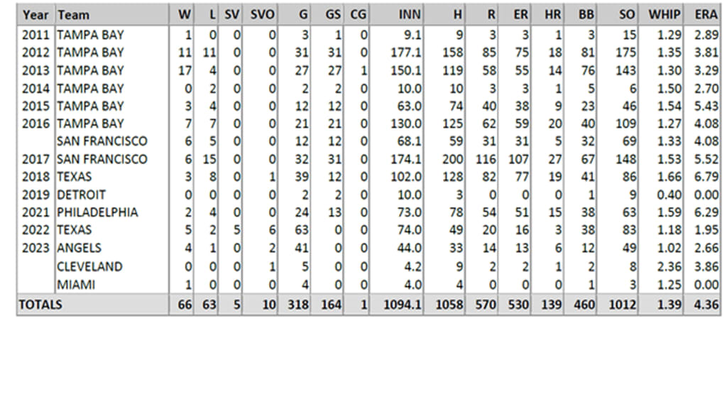 A native of Fort Walton Beach, Fla., Moore was originally selected by Tampa Bay in the eighth round of the 2007 Draft and made his Major League debut with the Rays in 2011. He was an A.L. All-Star in 2013 and has totaled 318 career games (164 starts) across parts of 12 MLB seasons with the Rays (2011-16), Giants (2016-17), Rangers (2018, 2022), Tigers (2019), Phillies (2021), Angels (2023), Guardians (2023) and Marlins (2023). In 2020, Moore made 13 starts for the NPB Pacific League Champion Fukuoka Softbank Hawks.