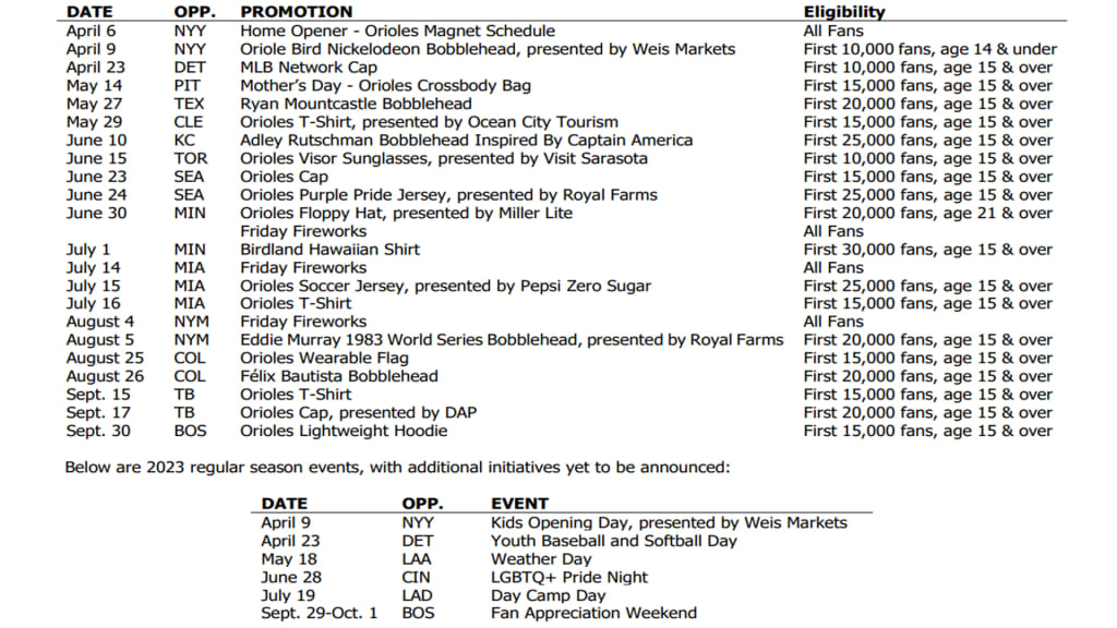 The 2023 giveaway schedule is available below and at Orioles.com/Promotions: