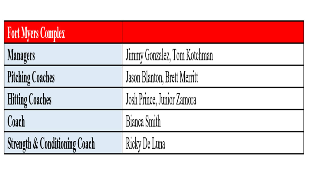 Serving as a hitting coach in Fort Myers for a second season will be Josh Prince, who joined the organization in 2020 as Hitting Coach for Single-A Greenville after spending the 2019 season as a player/coach for the Sugar Land Skeeters in the Atlantic League. Junior Zamora also returns for a second season as a hitting coach, following six years in that capacity for the Gulf Coast League Red Sox and seven years as a bench coach for the Dominican Summer League Red Sox.