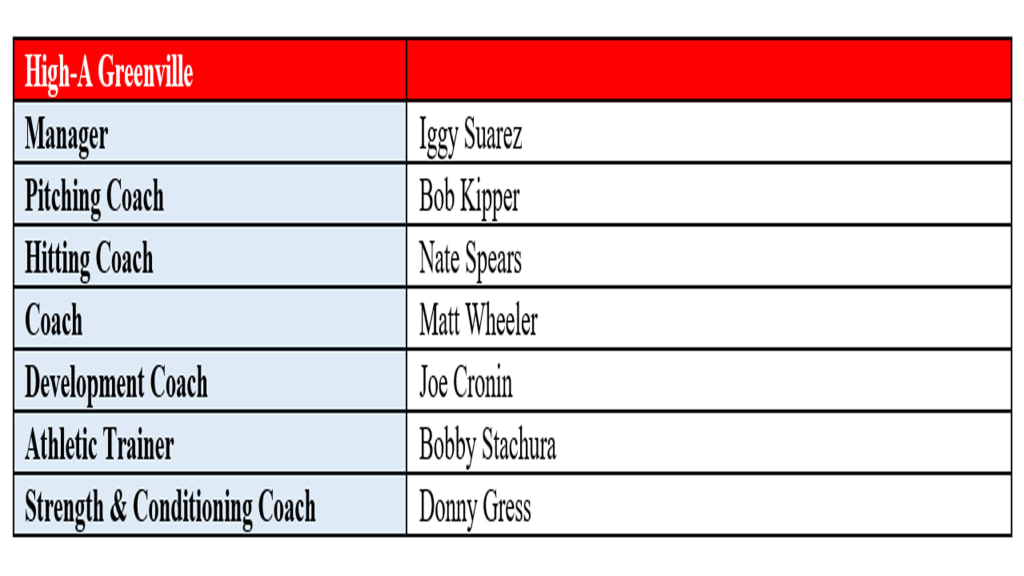 Iggy Suarez returns for a fifth season managing Greenville, marking his eighth season in the organization and his seventh as a minor league manager. In 2021, he guided the Drive to a 67-53 (.558) record in the club’s first season as a High-A affiliate. Entering his 24th year in the Red Sox organization, Bob Kipper will return as Greenville’s pitching coach, having also served in that role with the Drive from 2005-06, 2008-09, and 2018-21. Returning for a second year as Hitting Coach is Nate Spears, who after serving as a coaching assistant with Greenville in 2016 spent four years as a hitting coach for Short-A Lowell (2017-20).