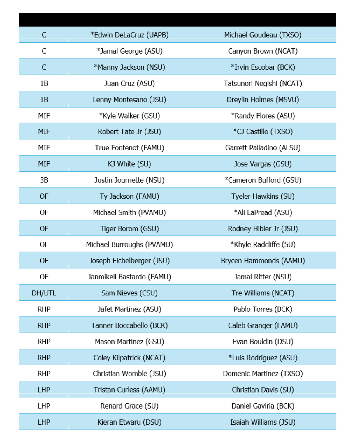 Below is the full roster of the participants selected for the HBCU Swingman Classic presented by T-Mobile & powered by the MLB-MLBPA Youth Development Foundation: