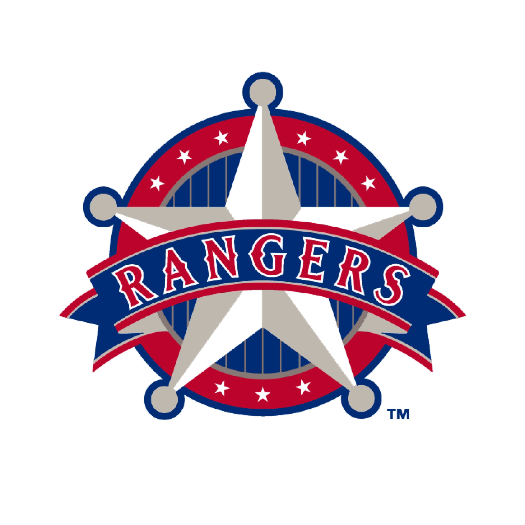 This logo also featured the outline of the state of Texas, but the large "T" and "R" were dropped. In its place, "Rangers" was written across the center in cursive. The baseball is also visible, but placed behind the "Rangers."