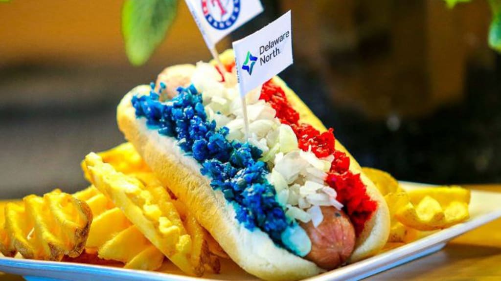 The Fowl Pole may have the size advantage of all the 22 new food items that will be introduced at Texas Rangers games this year, but it’s the RWB Dog that is the star. And for good reason.